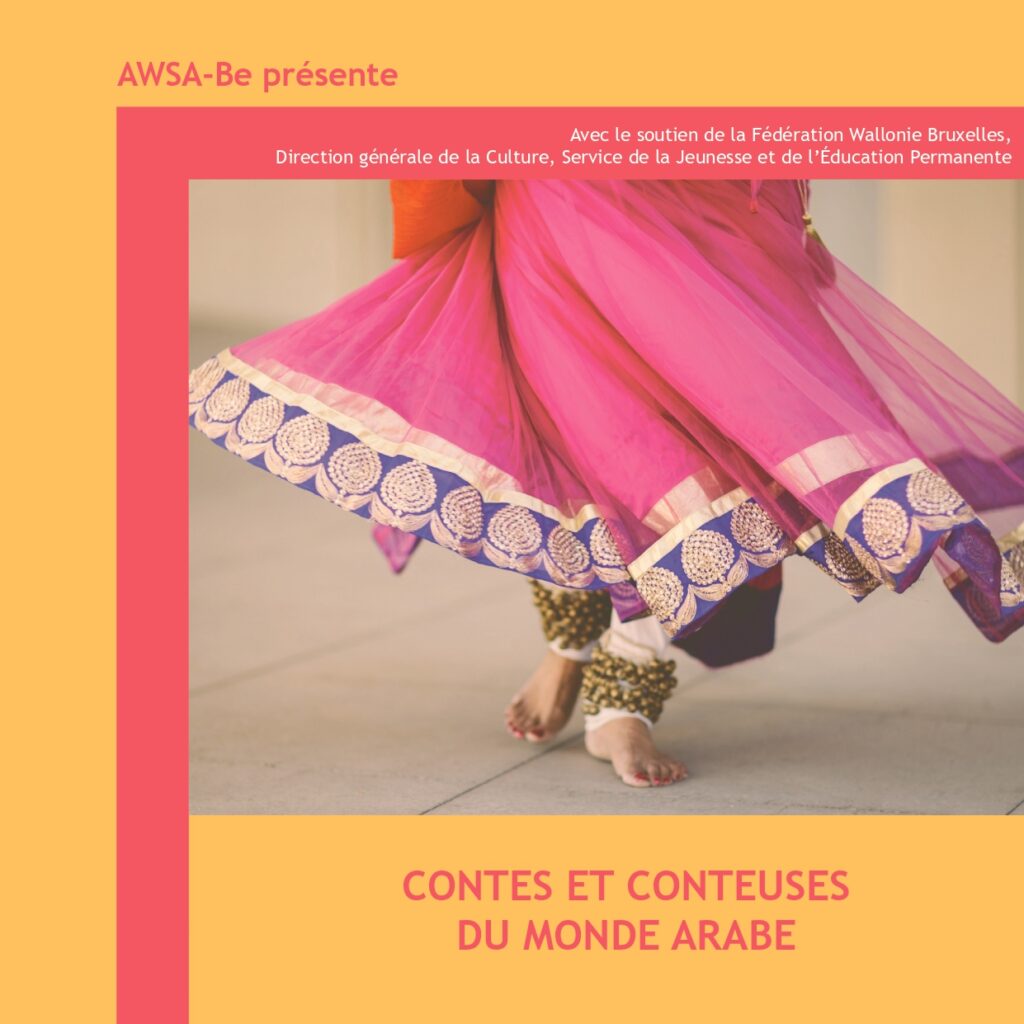 Avec le soutien du Fonds d’Impulsion à la Politique des Immigrés (FIPI), AWSA-Be s’est lancée dans un projet d’envergure autour des femmes artistes et intellectuelles du monde arabe « Femmes de plume et d’actions ». Parmi les 10 formations proposées dans ce cadre, nous avons organisé un atelier autour des contes du monde arabe. Nous avons pris conscience de la force des contes en matière de communication et de transmission de messages. A travers, notamment, un exercice pratique qui consistait à choisir un conte, à en dégager son squelette et à le conter à sa façon, nous avons pu voir le bel impact sur les participants- es : beaucoup de créativité, d’émotions, une prise de confiance en soi et aussi le partage. L’idée nous est venue alors de créer un outil plus spécifique sur les contes du monde arabe pour aller en profondeur dans la thématique et de proposer des animations qui offriront des moments de réflexion, d’échanges, d’émancipation et de paix avec soi-même.